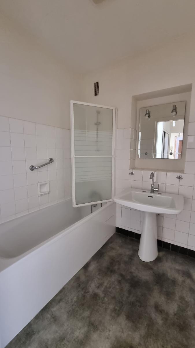 - Entrée, cuisine aménagée (meubles hauts et bas) et équipée (plaque induction, hotte, lave vaisselle), loggia, grande pièce de vie de 35m² donnant sur le balcon, couloir avec placards, deux chambres dont une avec placard, salle de bains, WC séparé.
