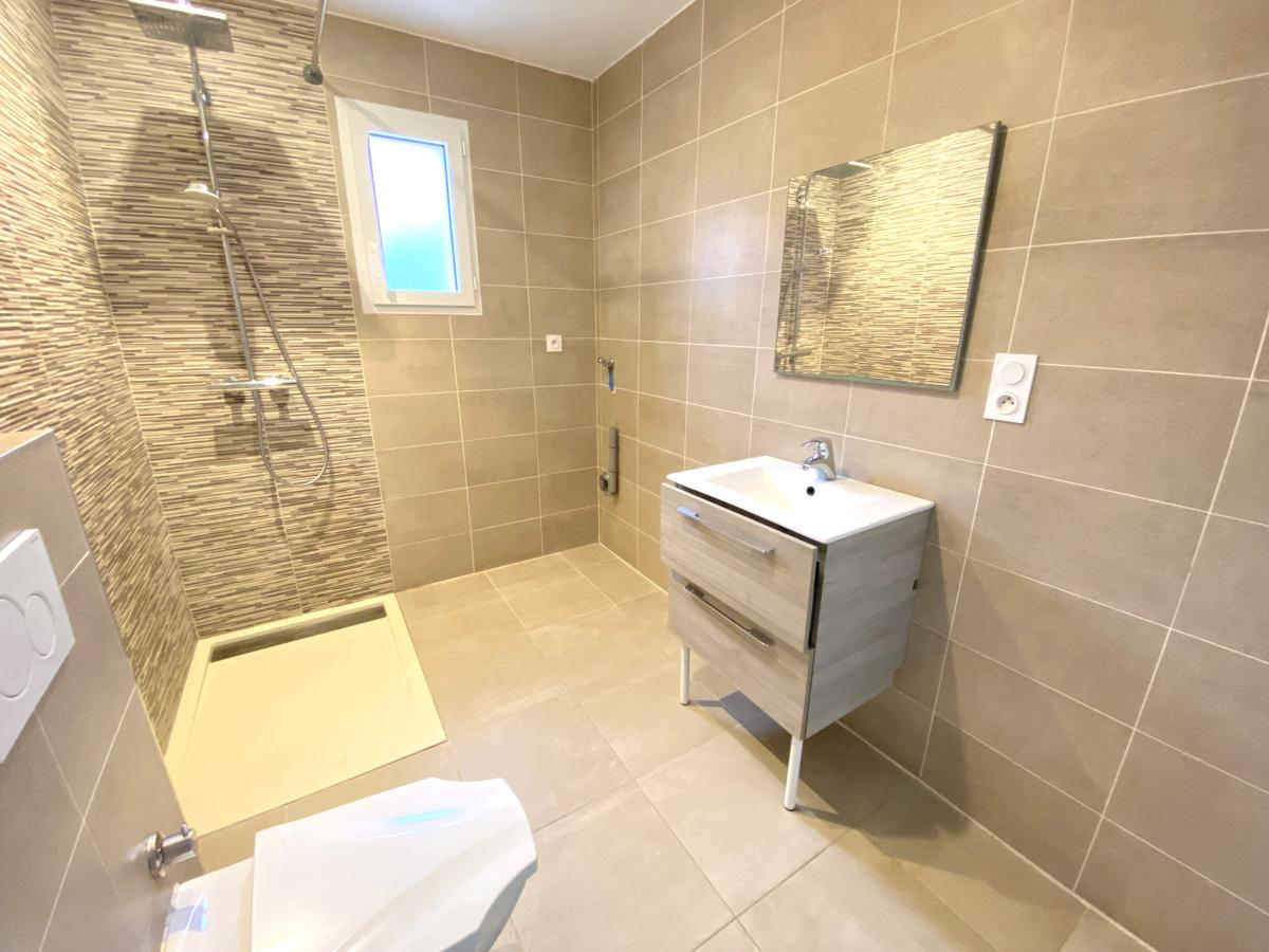 - Au rez-de-chaussée : un double séjour avec cuisine indépendante aménagée et équipée (four, four à micro-ondes, hotte), une salle de douche avec espace buanderie et WC.
