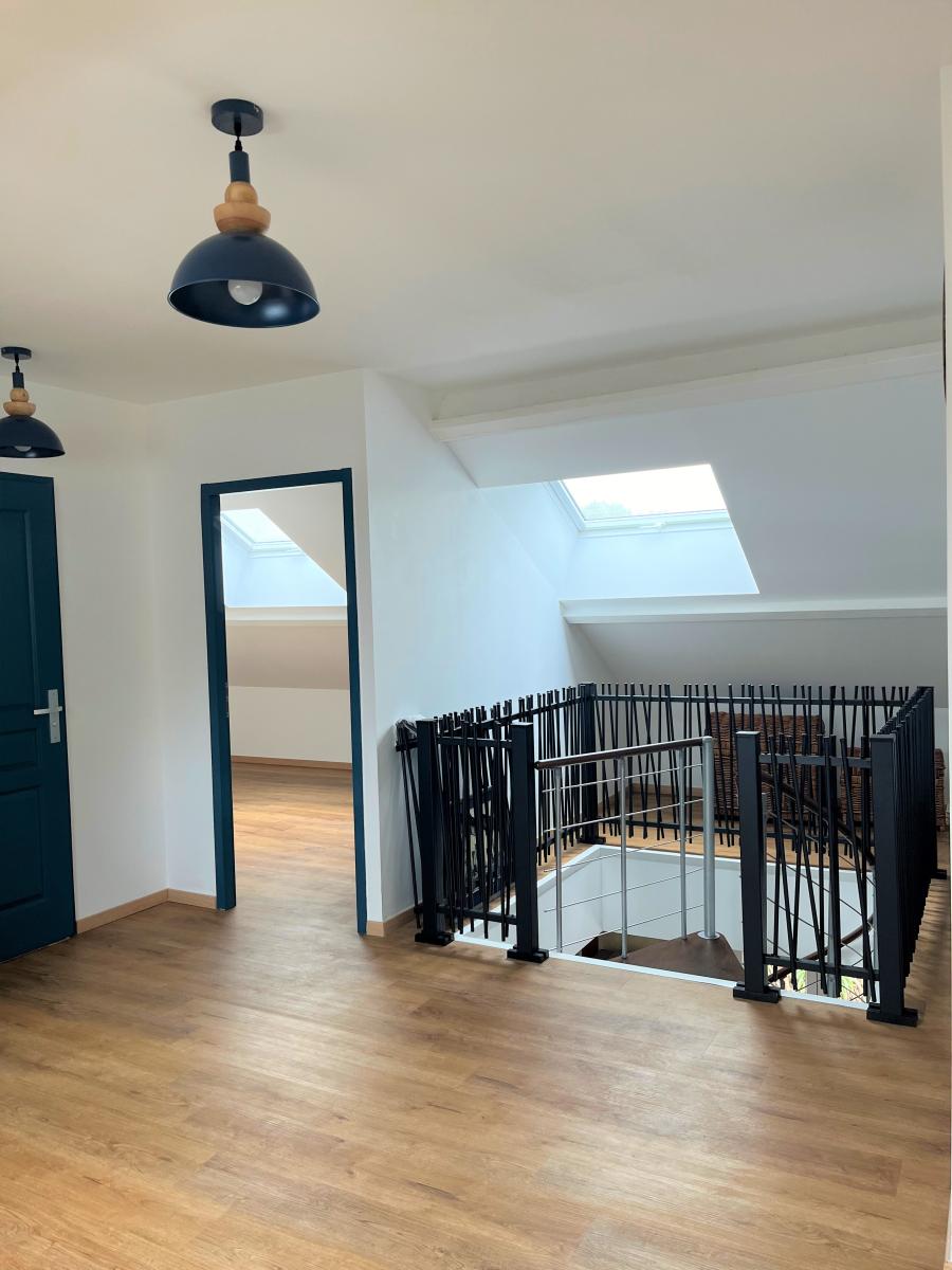 au 1er étage un espace neuf composé d'une mezzanine, 2 chambres et une salle de douche/ wc